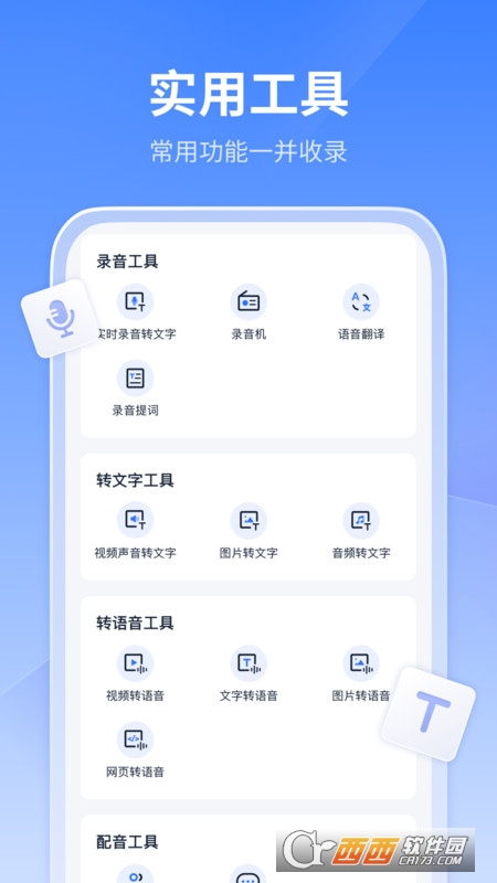 包含图片转文字、视频转文字、图片转语音、网页转语音等多类型文字语音互转工具