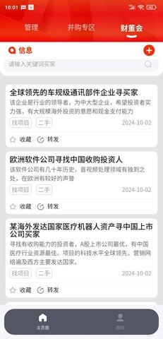 并购互联有着全球最新的并购信息,方便买方和卖方更好地寻找投资机会,在这里投资者们可以相互学习、沟通交流,您可以发布投资经验到社交圈中,也可以在资讯界面浏览,掌握最新的投资市场,帮助您轻松地玩转投资圈。