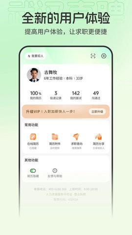 1、简历置顶:增加简历在HR后台曝光率,提高用户被邀请面试的概率;