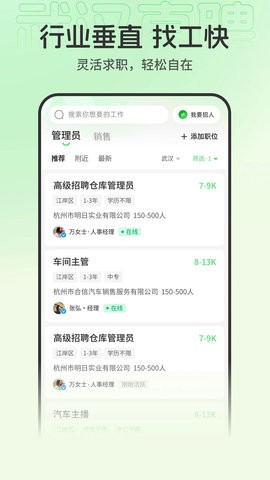4、智能推荐优质招聘信息,多行业、多职位任意挑选,总有一样工作是你喜欢的;