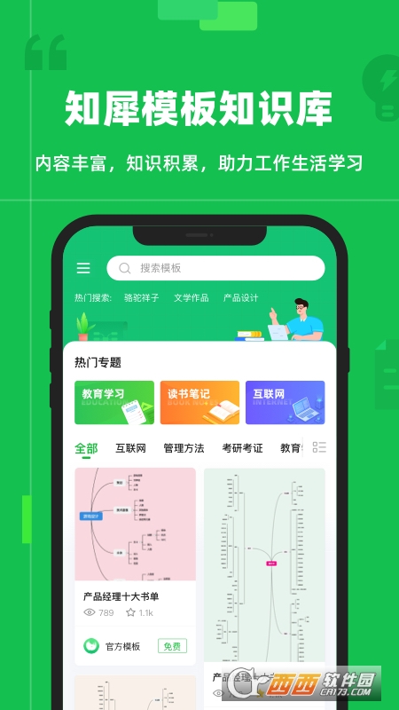 知犀思维导图app是由苏州知犀信息科技有限公司出品的一款思维导图类软件。用户通过知犀思维导图app能够更加便捷的在线进行思维的构建和分析,软件提供了大量的素材模板,不同的颜色笔记帮助你更加清晰的进行记录和扩展。软件及时更新各种内容,能够满足多种场景需求。欢迎大家下载知犀思维导图app体验。