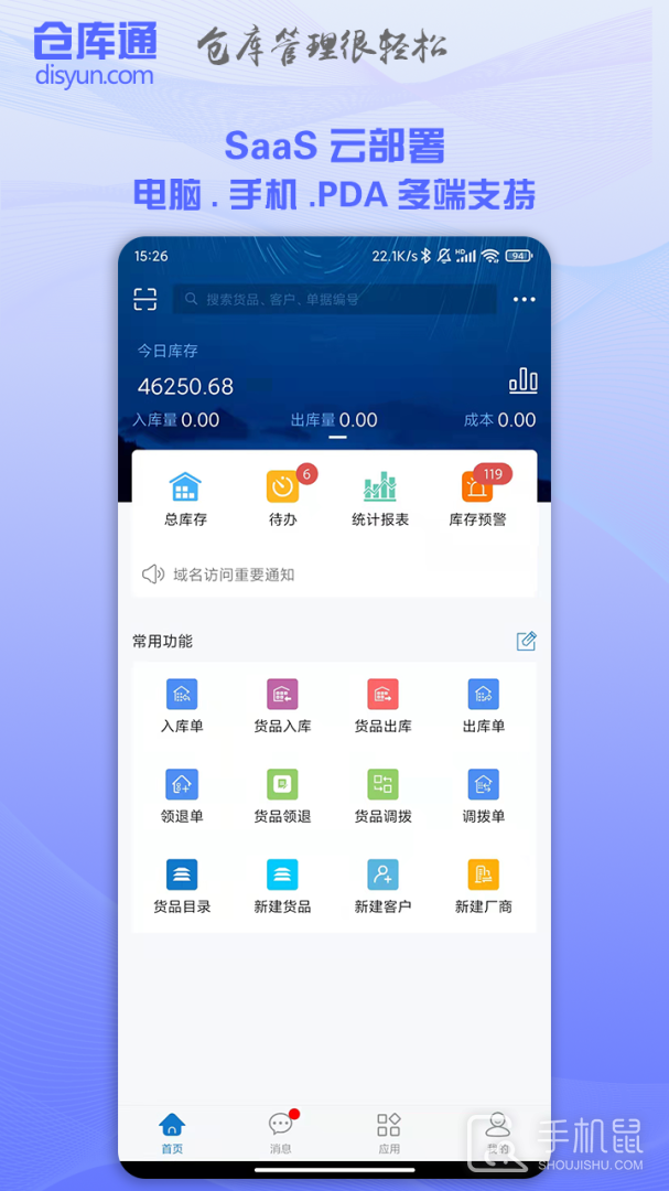 3、消息提醒,出入单、领退单、调拨单、以及盘点单信息及时提醒