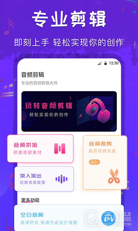 6、精确到毫秒的专业剪辑;从2265本地音乐库导入音频,自定义剪切范围,对裁剪的音频进行编辑和制作