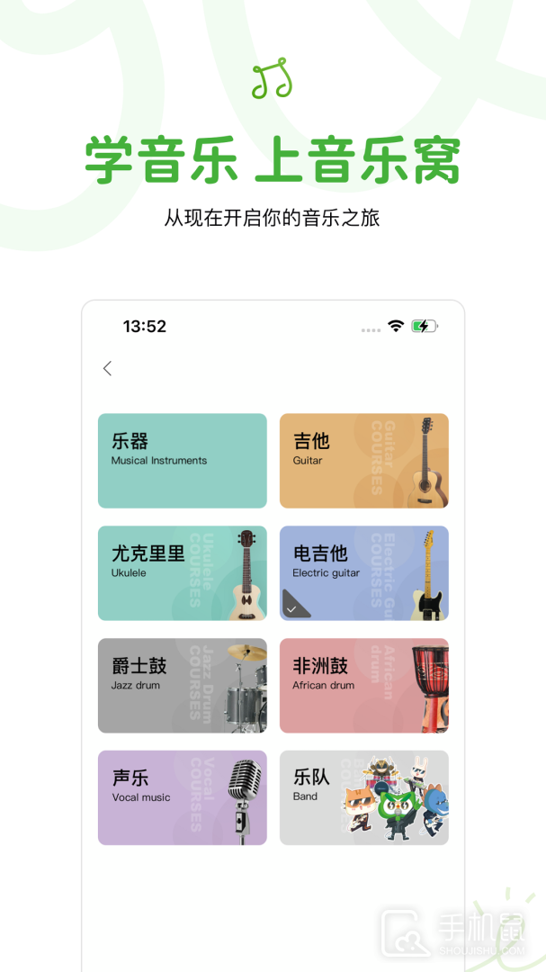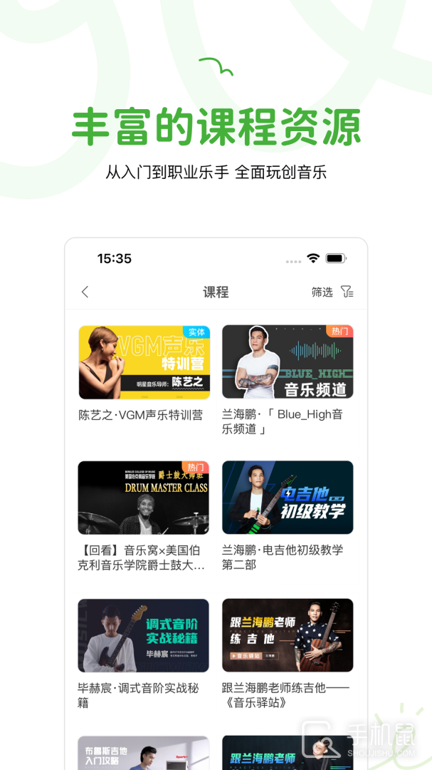 2、在这里可以学习吉他、键盘、鼓、声乐等;