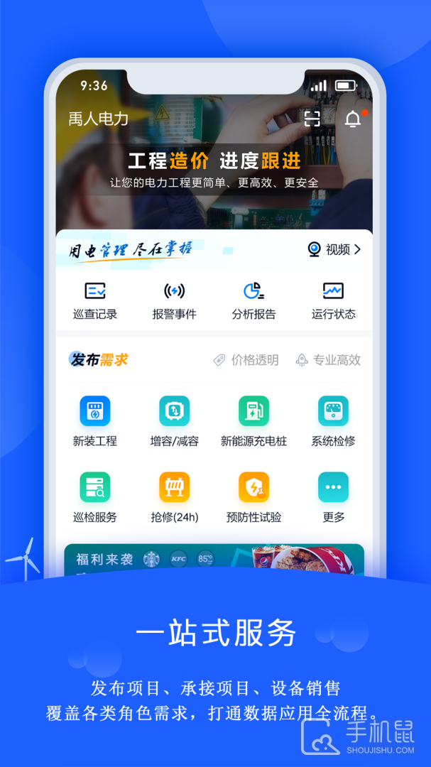 为用户提供有电力工程的一站式闭环流程服务功能,用户所需功能这里一应俱全