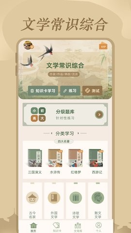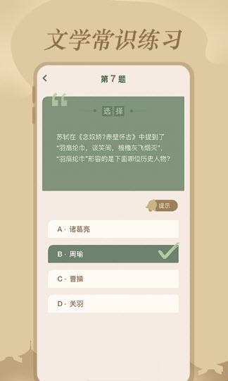文学常识中有大量的考试科目知识点,您可以在线练习文学常识,题目中还会有提示提醒您,为您提高文学能力和文学知识储备提供了一个良好的学习平台,该软件会实时更新各大高校真题,为您提供最新的学习资料,还有文学常识分类,您可以根据弱点难点进行练习哦~