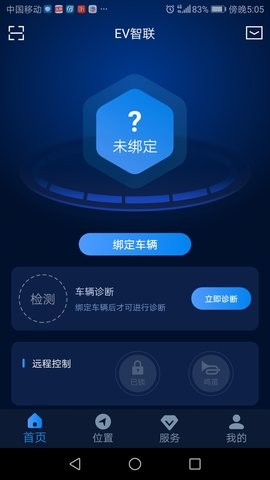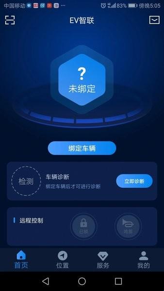 EV智联是为新能源汽车服务的app,通过该软件用户可以绑定自己的汽车,远程对汽车控制,包括查看汽车的车辆状态、车辆电量等信息,及时对您的新能源汽车充电,您还可以在这里进行车辆诊断,控制汽车鸣笛、远程开关车门等功能,为您的出行服务提供了诸多便利!