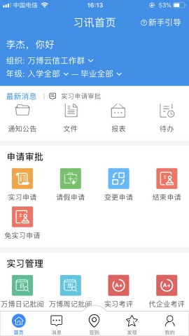 习讯云平台助力职业院校实现精准到位的全流程顶岗实习服务,融合实习管理、实习教学、互动交流、调查问卷、校企沟通等多个环节为一体。