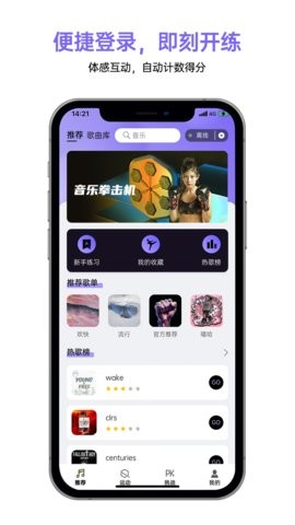 1、音乐与拳击结合:将音乐融入拳击训练,让训练过程更具节奏感和趣味性,区别于传统枯燥的训练方式,有效提升用户训练积极性。