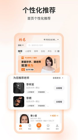 精为app是专注于老师上门服务的平台,不论是家教、艺术教学还是陪学,在这里都可以体验到,如果您是老师,可以通过平台认证快速入驻平台,时间自由且学生资源稳定,如果您是家长,在这里可以请到优质的老师,覆盖范围超级广,而且用户不受年龄和地域的限制哦~