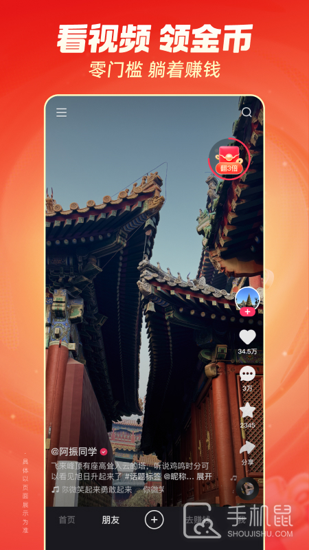 3、可以通过刷视频、邀请新用户、完成日常任务等方式赚取金币,金币可以兑换现金并提现。