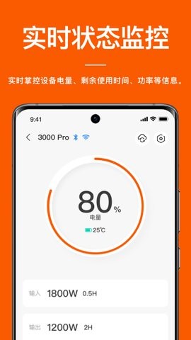 2、实时监测设备状态,如电量、剩余使用时间、温度、输入输出功率等。