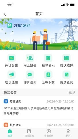 苏能英才app为公司提供了人才评价和员工培训等服务,该软件包含网上报名、名单公示、成绩查询和证书下载等功能,还有培训通知公告提醒您培训时间安排,在培训园地还有学习资料可以自行下载学习,也支持加入培训班在线缴费,方便企业培养高端人才。