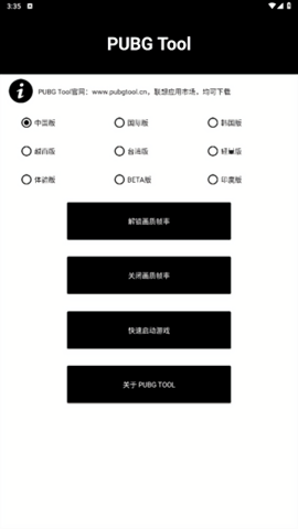 pubg tool官方正版是一款专门为安卓手机用户们打造的吃鸡游戏辅助工具,它能够帮助用户修改吃鸡游戏内部画质和帧数,可以一件提升值最高画质和120帧,中低端机型也可使用,并且不会影响手机运行,还能够解决游戏黑屏闪退和卡退的情况,体验干非常好。
