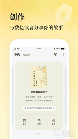 作品创作:支持创建作品,便捷发布、修改章节、保存草稿