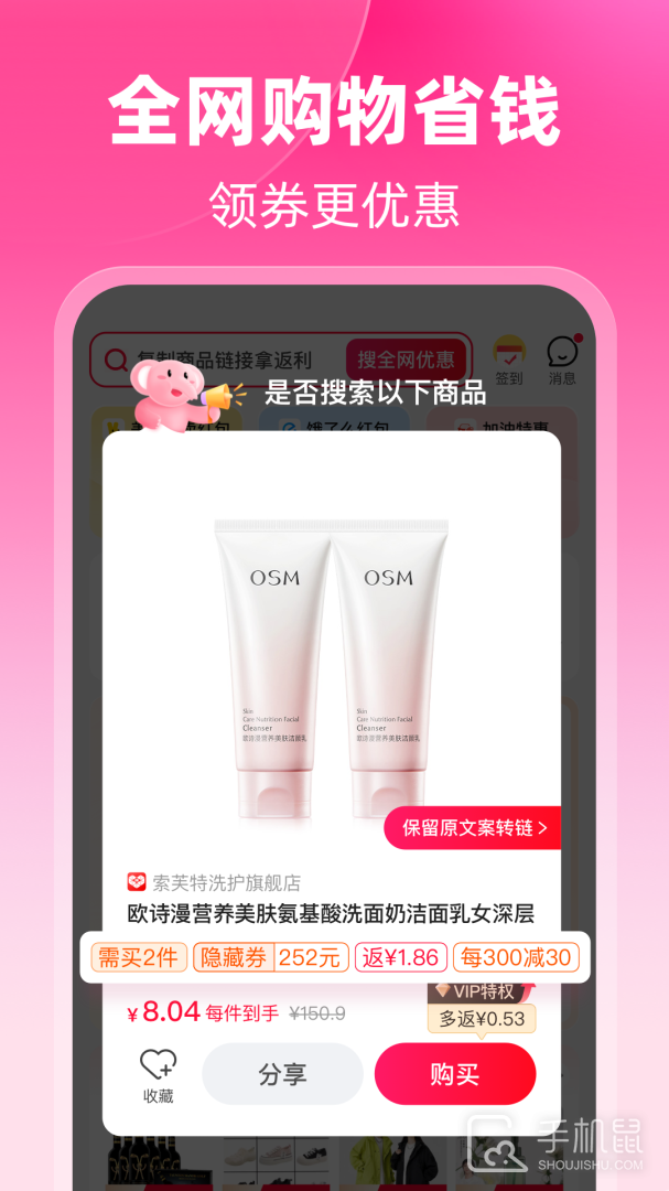 粉象生活app集导购、优惠与返佣功能于一体。该平台不仅覆盖了全网络、全品类的商品与服务,更以“分享生活,共创价值”为核心宗旨,专注于整合并推荐综合电商及生活服务领域的优质平台。通过创新的社交推荐技术与智能算法匹配,粉象生活不断优化用户的在线购物体验,让每一次点击都充满惊喜。粉象生活app作为一站式省钱与分享的超级入口,粉象生活深度对接了淘宝、天猫、京东、拼多多等主流电商平台,以及饿了么、大众点评等生活服务领域的佼佼者,汇聚海量优惠券与优惠信息。无论您是想购买时尚单品、家用电器,还是寻找美食餐厅、休闲娱乐的好去处,粉象生活都能让您随时随地享受超值优惠,轻松提升生活品质。
