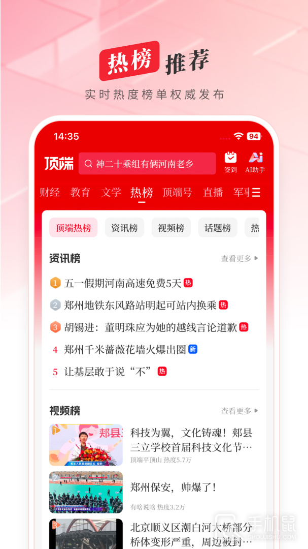 顶端新闻app专注于为用户提供最新、最全面、最准确的新闻资讯。顶端新闻app,作为河南日报报业集团有限公司匠心打造的卓越新闻移动平台,不仅承载着河南省委直属权威主流媒体的使命,更以先进AI技术为引擎,专为新时代主流受众量身打造。集个性化、年轻化、互动式、视频化于一体,全面覆盖资讯、政务及本地生活服务,让用户在指尖轻松触碰世界脉搏。用户通过顶端新闻app,能够迅捷获取社会万象的最新动态,体验前所未有的信息获取便利。