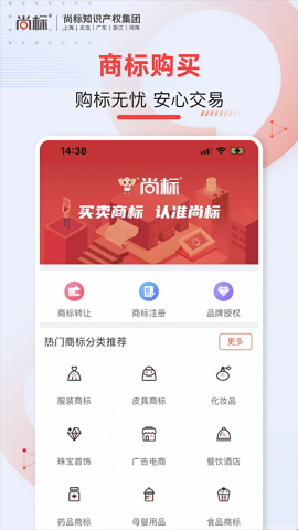 尚标商标转让app官方版是一款商标服务平台,它里面提供了商标注册,商标转让,商标在线交易等服务,用户可以在上面轻松注册商标,同时还可以将商标进行转让,十分便捷,并且能够购买到其他的商标专利,每种商品都有不同的商标,在分类里可以快速查找。