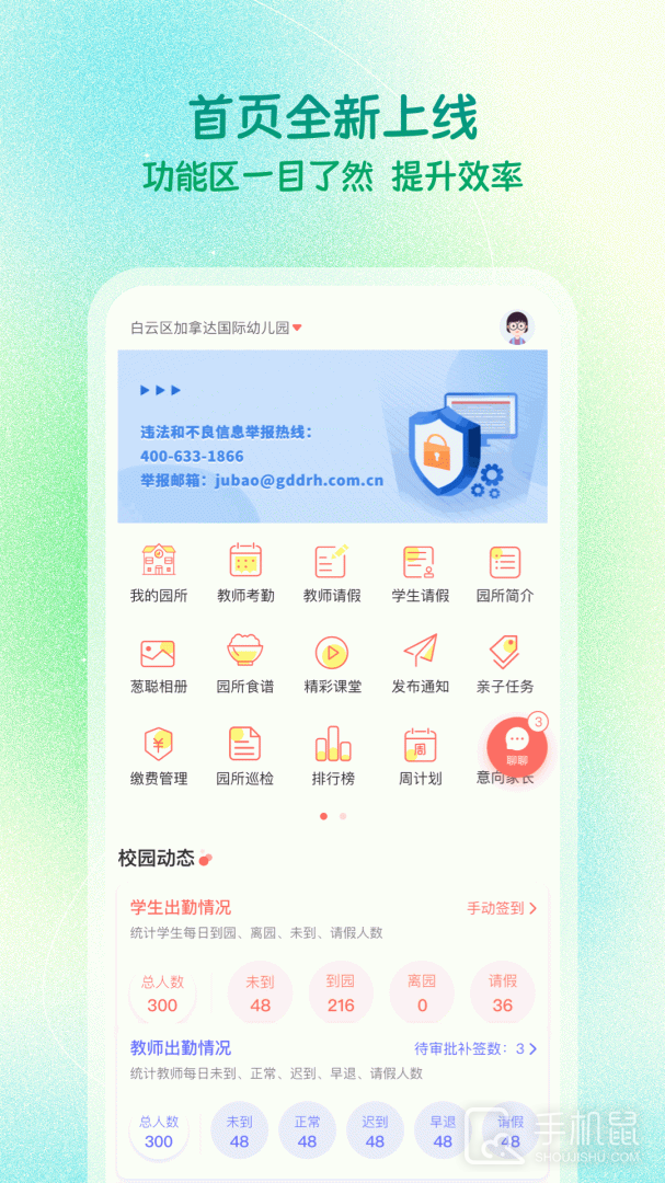 2、学生考勤:班级学生考勤统计管理,带来很多便利