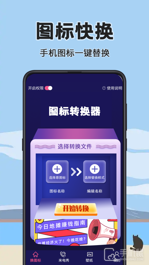 换图标icon是一款功能强大的安卓应用,旨在为用户提供个性化定制手机图标的便利工具,无论你喜欢简约风格、卡通形象还是艺术味道,都能满足你各种需求,它拥有丰富多样的图标库,向用户提供了海量高清精美图标选择,让你可以轻松替换手机桌面上的原始图标,还支持自定义设计,让你能够按照自己的喜好,创造出个性化的独特图标,换图标icon还有智能匹配和自动排列的功能,帮助用户快速整理和改变图标布局,让手机桌面更加整洁有序。