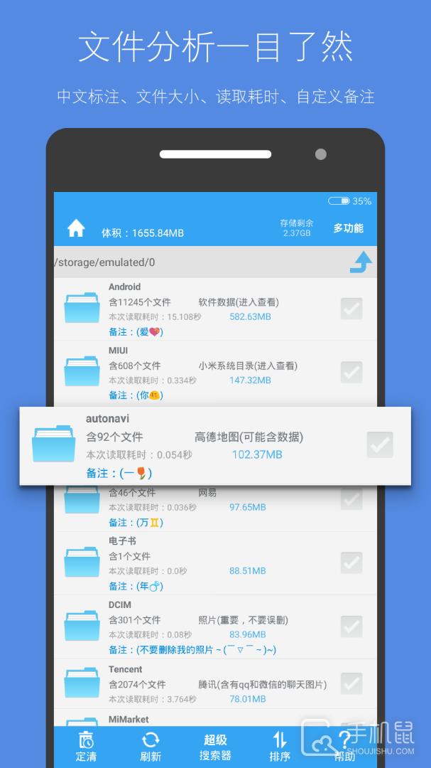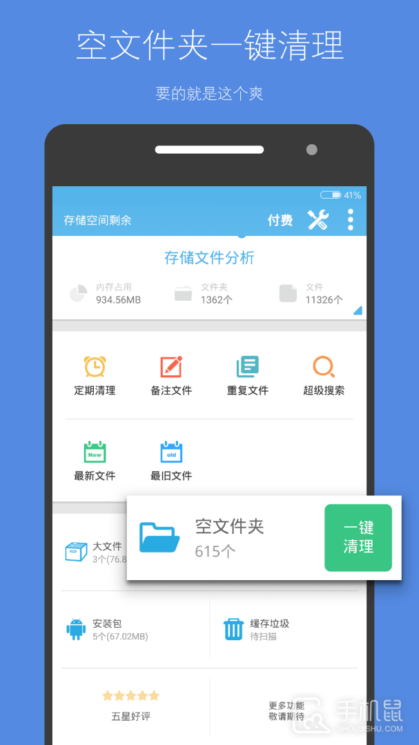 管理手机存储,快速优化内存,清理文件夹中多余的垃圾,让手机更流畅