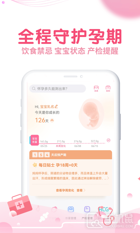对于已经怀孕的用户,提供了全面的孕期信息,包括每周的宝宝发育情况和体验分享。用户还可以定制自己的孕期计划,并设置提醒来跟踪产检日期、服用维生素和药物等。