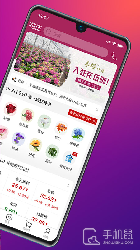 在花伍app可以找到云南昆明斗南的鲜花货源,鲜花配送到各地鲜花批发市场,为花店进货提供便捷的体验,还可查询鲜花速递物流信息;同时花店可以在花商圈子里获得插花教程、花艺培训、花店经营、花卉绿植养护、花礼、节日花语等信息!
