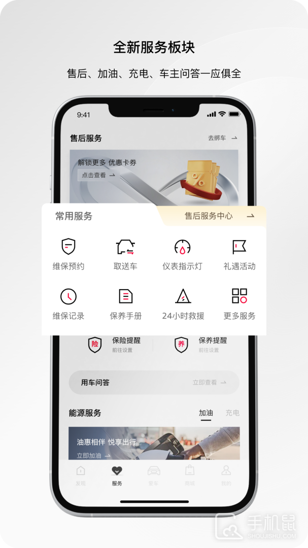 【服务】 新增售后服务中心,从日常保养到故障报修,一站式包揽所有用车养车需求;新增能源服务中心为NEV车主专门打造的全新充电中心;新增购车服务中心,为您提供更优的看车订车服务。