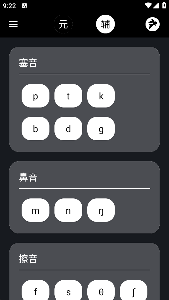 3、向左滑动屏幕可以切换至辅音页面。