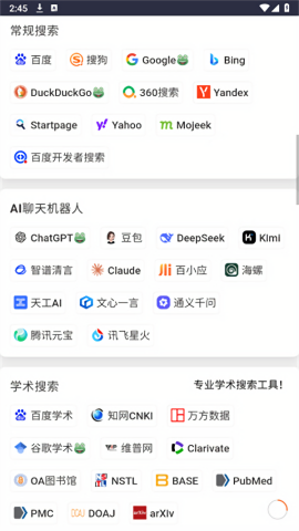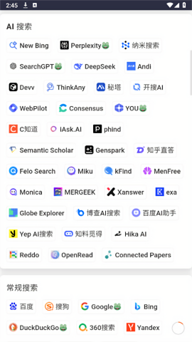 1、整合了众多搜索引擎的网址链接,方便用户快速访问不同的搜索平台。
