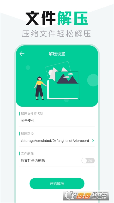 【便捷的文件解压功能】zip文件解压、RAR文件解压,可对手机里的压缩包进行解压,一键解压缩,还可以对压缩包进行重命名、分享,查看解压记录。