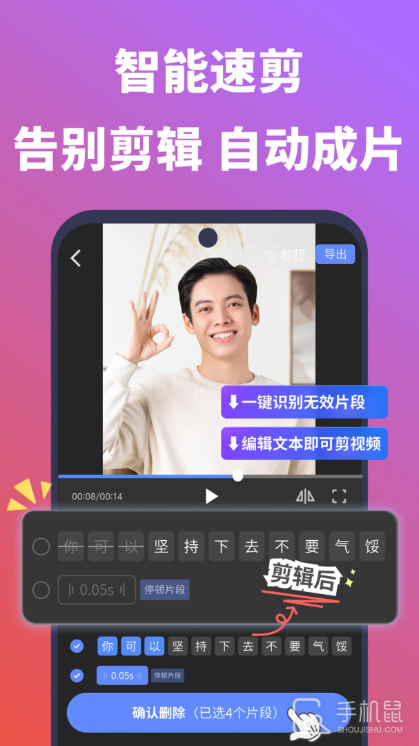 先进算法识别精准字幕,一键添加,大幅节省错字校正时间。