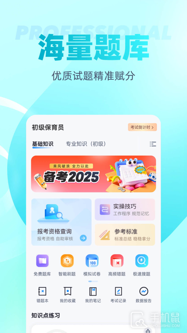 保育员考试聚题库是一款面向保育员职业资格考试的手机应用,它提供丰富的题库,涵盖保育员职业知识的各个方面,包括儿童心理学、教育方法、卫生保健等,用户可以通过刷题提高自己的知识水平和备考效果。