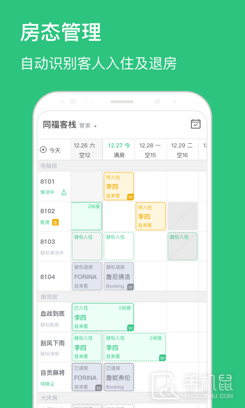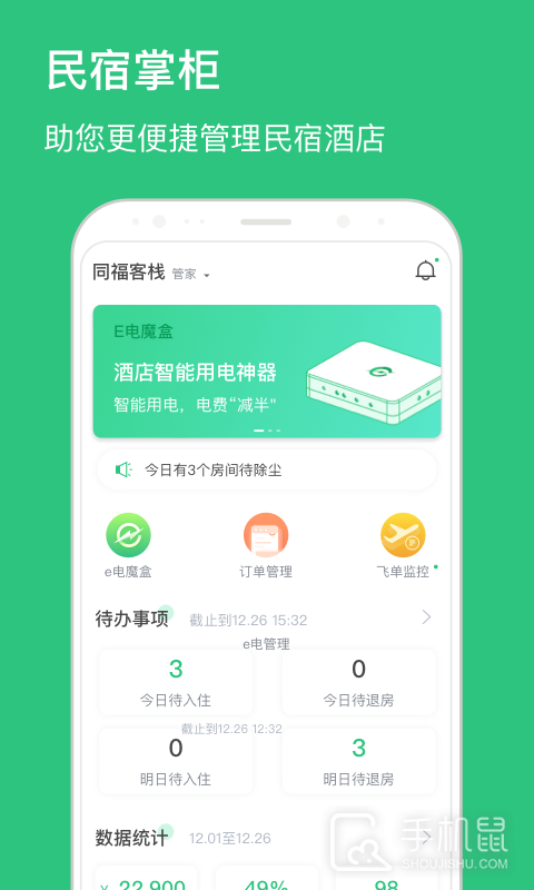民宿掌柜是一款针对民宿管理的安卓手机app,提供了房间预订、订单管理、客户评价等功能,帮助民宿业主高效运营自己的民宿,提升用户体验。