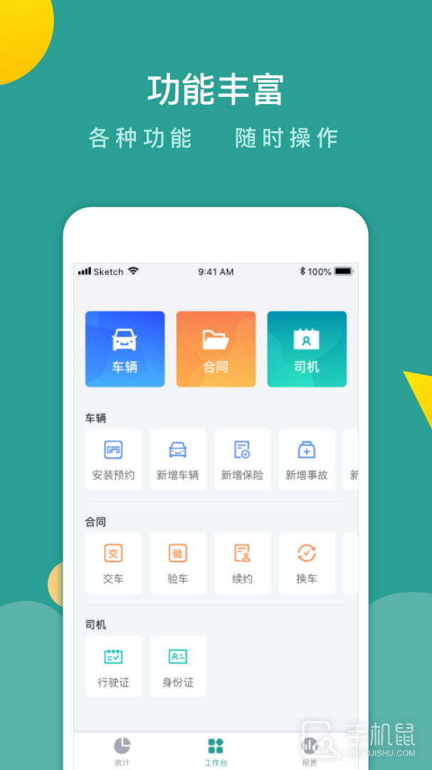 3、百跑管车集车辆服务管理,GPS定位,实时查询位置,合同管理等功能为一体