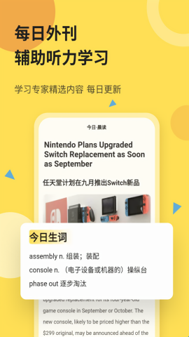 与拥有海量词库的百词斩app友情联动,可查词典、背单词。听力&词汇提高同步搞定