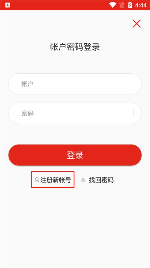 2、已注册过的用户可以点击登录,输入账户、密码进行登录;没有注册过的用户可以点击注册新账号进行新用户注册;