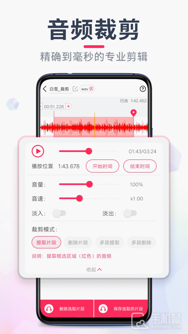 - 从本地音乐库或局域网无线导入音频,自定义裁剪范围