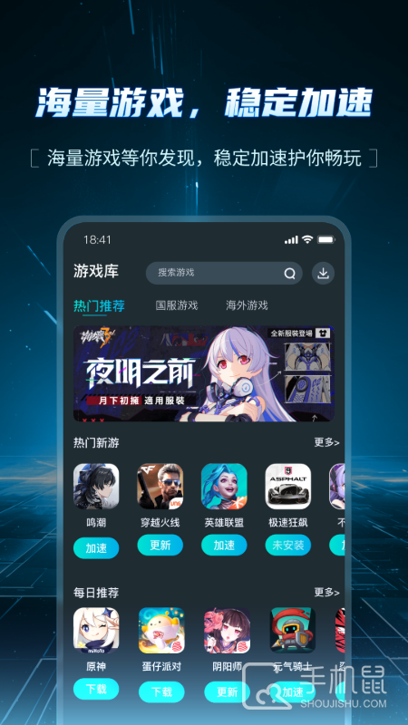 1、首先在本站下载并安装该软件,进入该软件默认进入加速页面,在当前页面可以软件会自动识别设备内可加速的游戏。