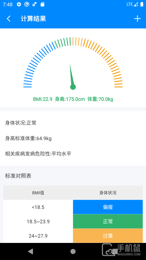 1、它会根据用户的BMI指数来告诉用户,用户的体重偏哪一边