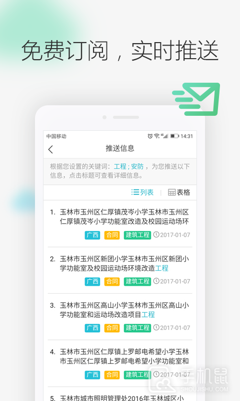 招标信息订阅:全行业招标采购信息智能订阅,支持多种信息类型自由选择,微信+APP双平台为你实时推送。