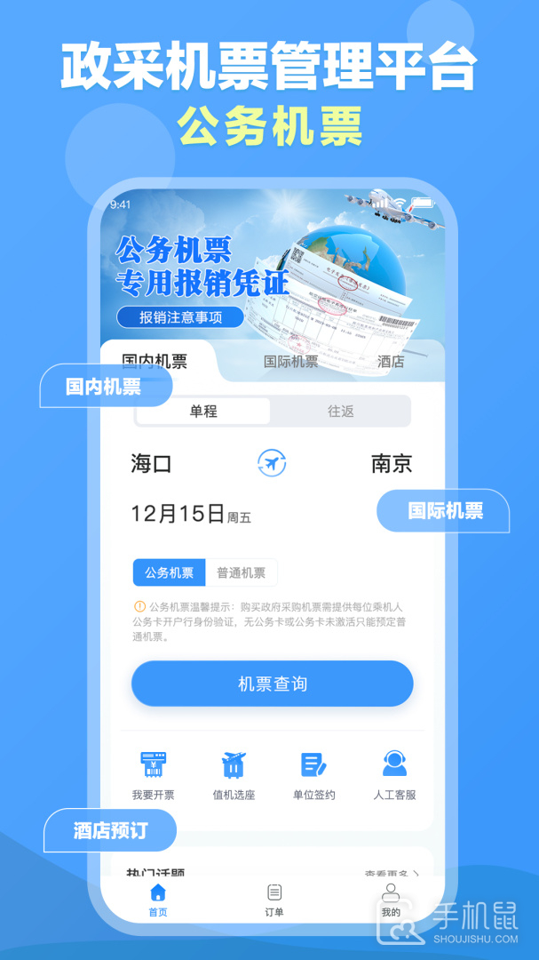 3、机票预订,采购方便,随时随地满足您的出行需求,订票流程便利,出票规范有保障,轻松报销