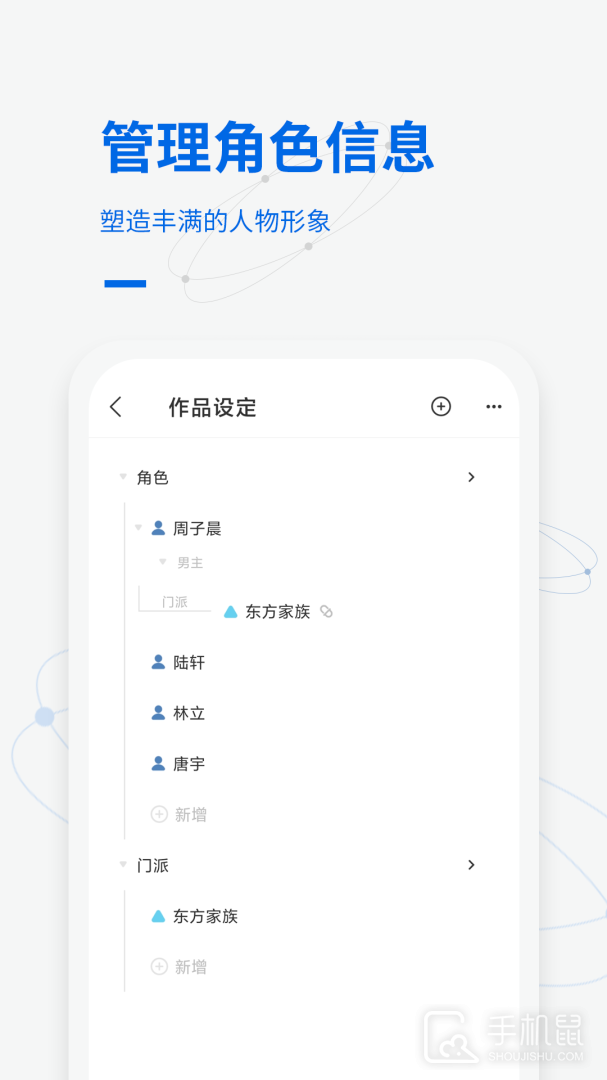 【作品设定】:让您集中管理角色信息,方便塑造丰满的人物形象。丰富的素材库则为您的创作提供源源不断的灵感。