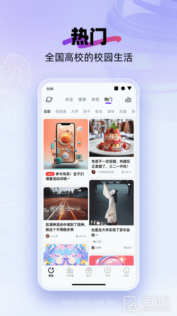 3.【精彩的内容推荐】:校园墙、搭子、游戏、美妆、美食等等,你想看的这里都有!一起来感受校友的元气满满吧。