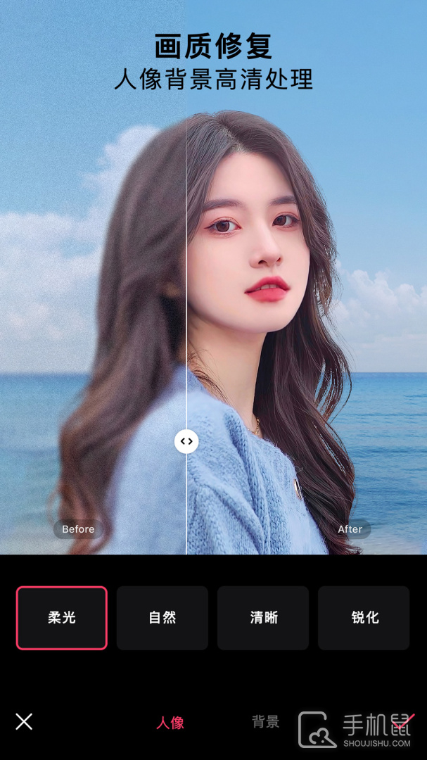 1、方便您随时随地P图,超全面的工具可以使用,还有强大的画质修复功能