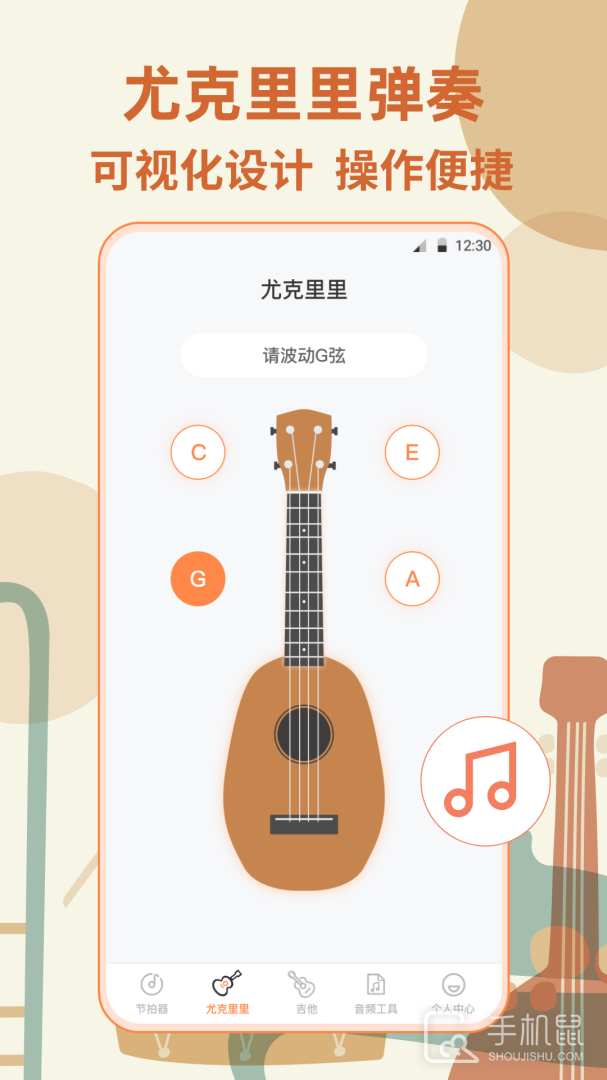 3、通过手机自带的麦克风快速精准地告诉你怎么对乐器进行调音以及校准,识别每一根琴弦,适用于任何人群
