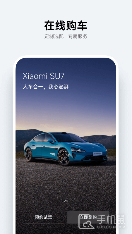 购车:小米汽车核心亮点和技术参数介绍,可预约试驾,配置并定购你的小米汽车,支持在线处理提车待办事项。