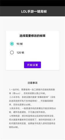 英雄联盟手游一键高帧最新版是专为手游英雄联盟游戏进行打造的一款专属游戏辅助软件,该软件能够快速提高玩家手机的性能,让您的帧率快速提高到120,并且保持游戏网速的优化和手机性能的提高,帮助您手机降低发热情况,让您玩游戏时体验更舒适,赶快下载来体验吧。