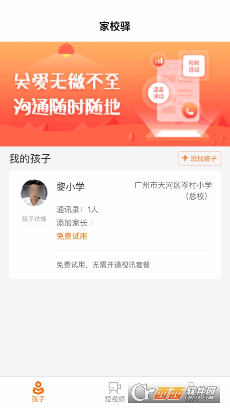 家校驿是家校信息沟通平台。让学生在校可与家长进行视频电话沟通、语音电话沟通、发送短视频留言;在这里,老师,家长一起关注孩子的平安幸福成长。