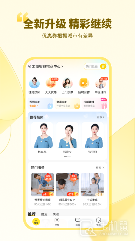 按摩可以有效的放松身心,往约为用户提供专业、正规、安全、便捷的24小时上门推拿服务,可以让用户轻松预约线下的上门推拿套餐,自由选择心仪的技师。软件内提供多种服务项目,一键下单后完成支付,就会有技师迅速回复。平台内拥有国内一流的专业推拿技师团队,每位技师都经过严格的认证和培训,持有专业国家级资质证书,并具备丰富的理论和实践经验。无论您是想缓解身体疲劳、舒缓肌肉紧张,还是寻找放松身心的方式,往约都能满足您的需求。